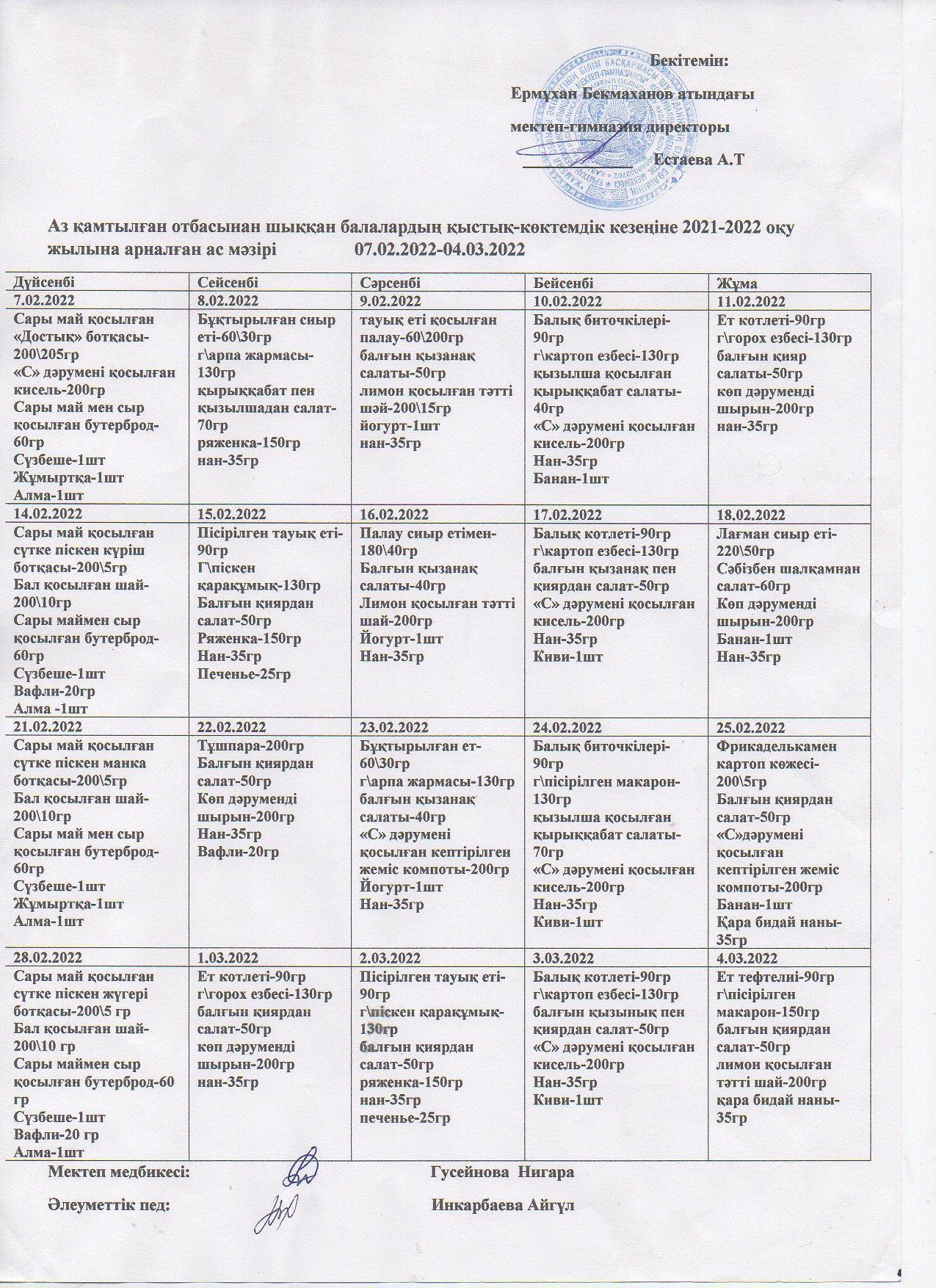 09 March 2022 Ас мәзірі