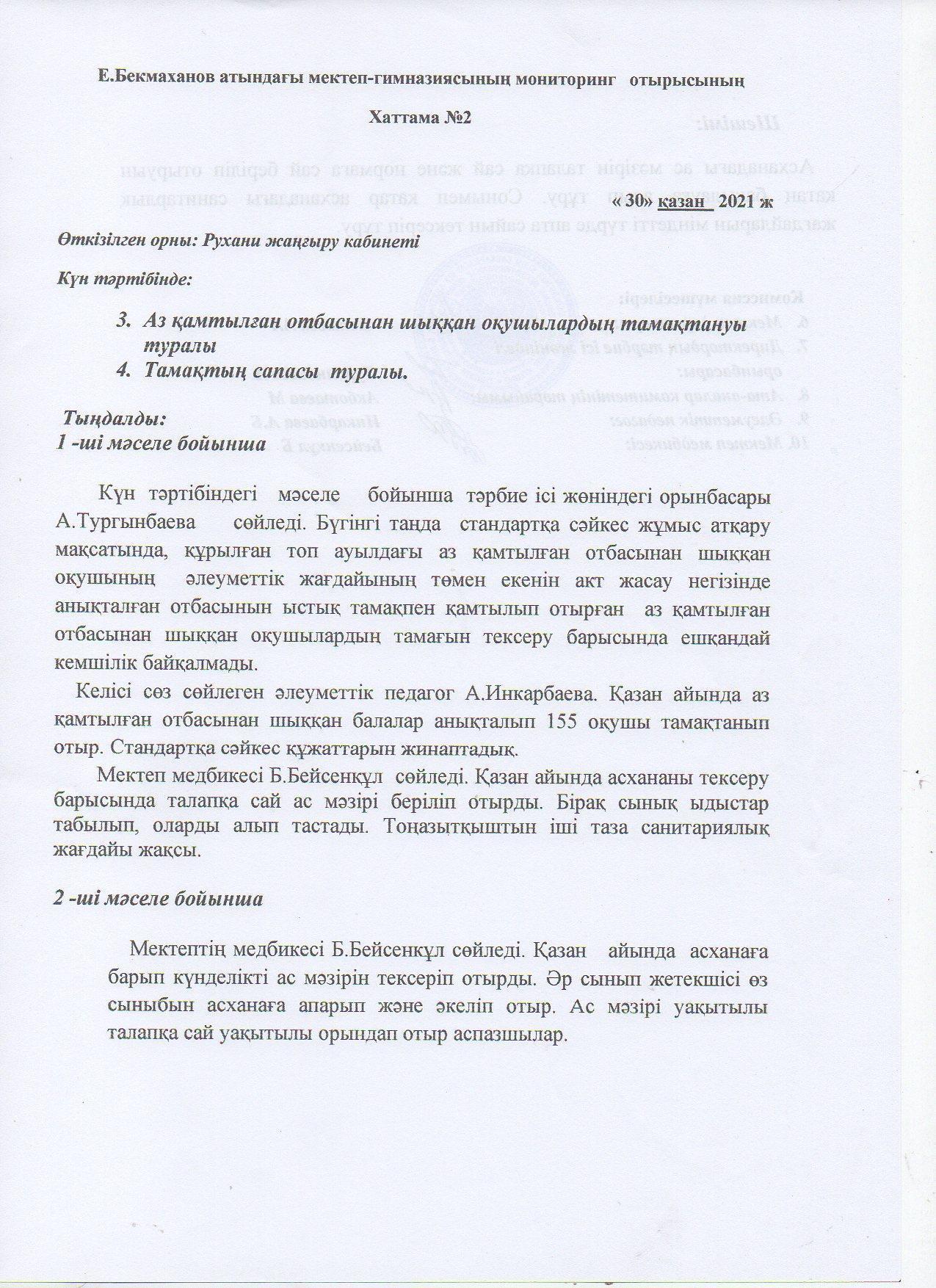 Қазан айындағы мониторинг отырысы » Е. Бекмаханов атындағы мектеп-гимназия