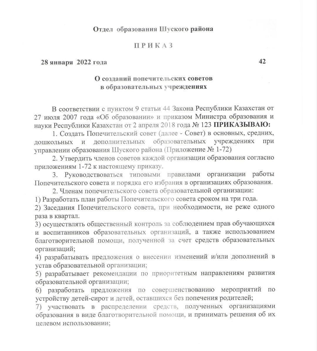 Шу ауданы білім бөлімінің