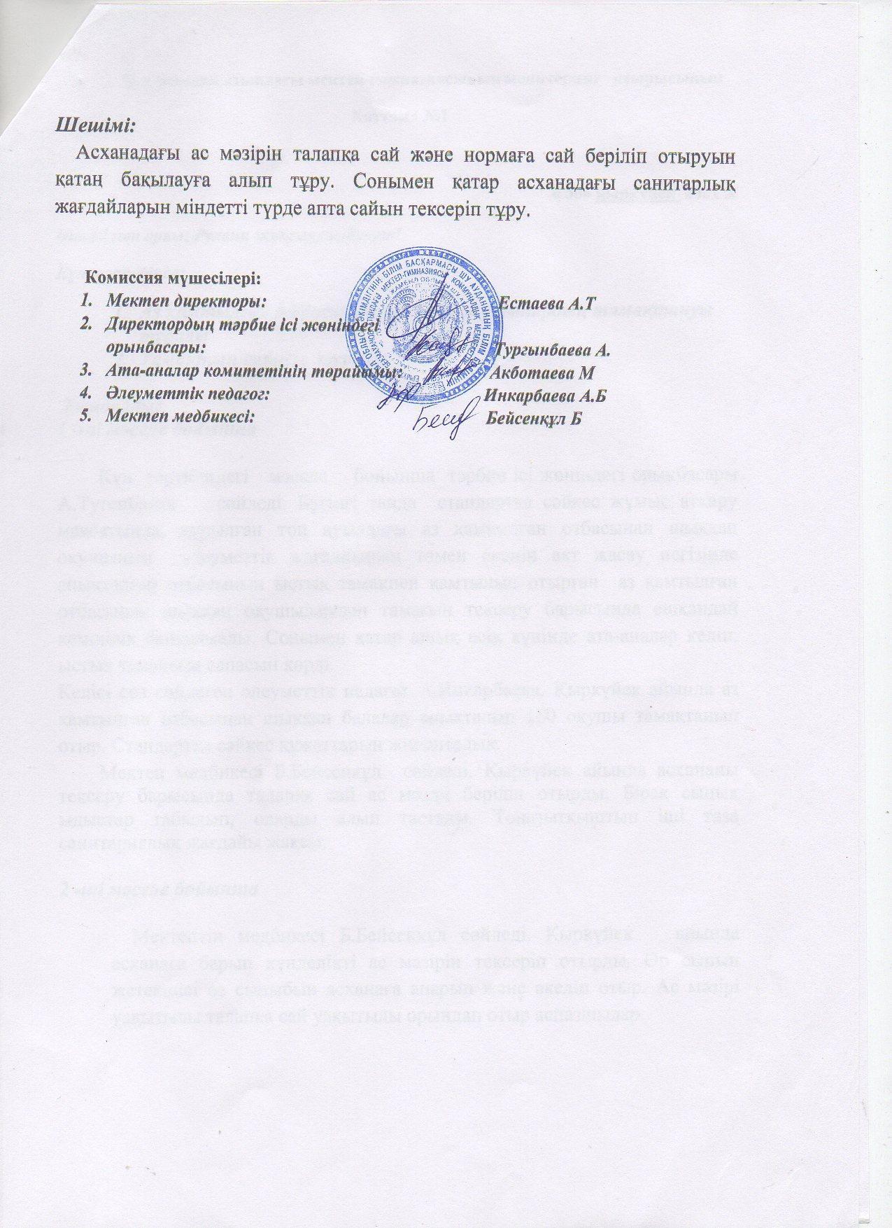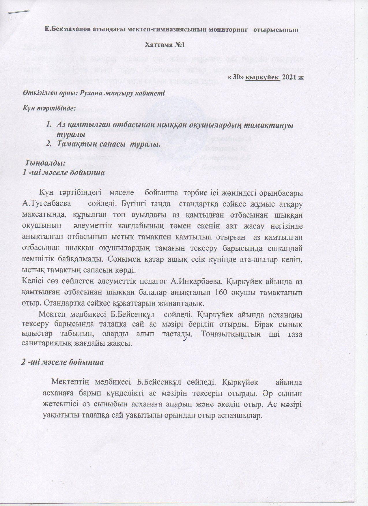 тамактандыру сапалық мониторингі » Е. Бекмаханов атындағы мектеп-гимназия