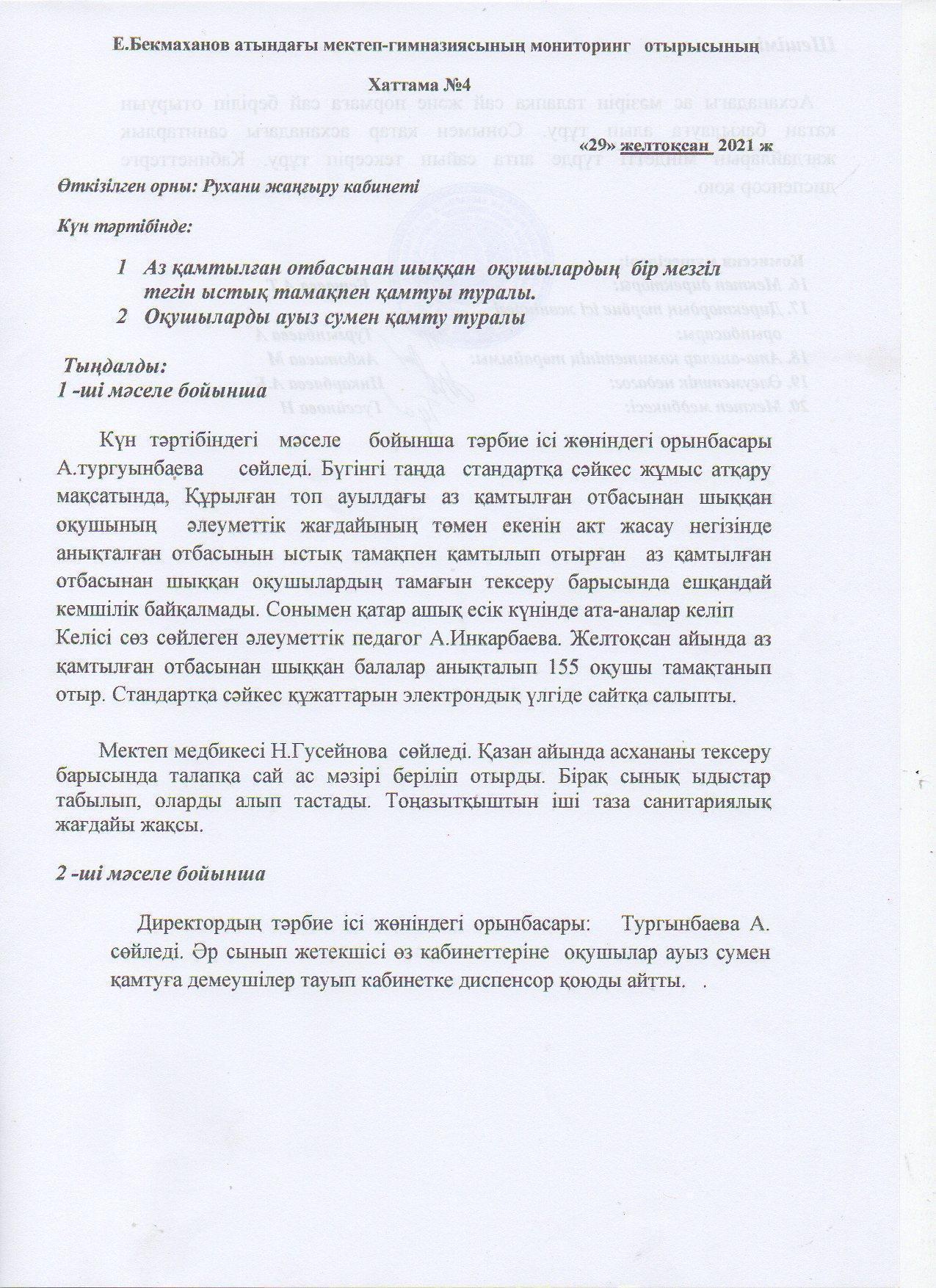 тамактандыру сапалық мониторингі » Е. Бекмаханов атындағы мектеп-гимназия